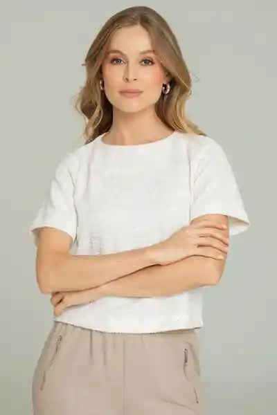 En Bucle Escote Redondo Con Abertura en Espalda y Botón Manga Corta.
