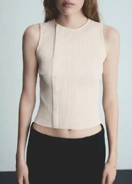 Cierre de Botones Laterales, Cuello Redondo, Diseño Entallado, Diseño Recto, Sin Mangas, Tejido de Punto, Tejido Mezcla de Algodón - 77045670_05.