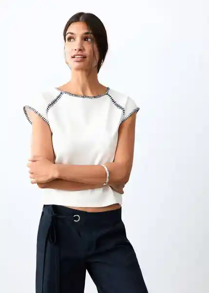 Cuello Redondo Cuello y Mangas en Contraste Detalle Costuras Diseño Recto Manga Corta Tejido 100% Algodón - 27004053_05.