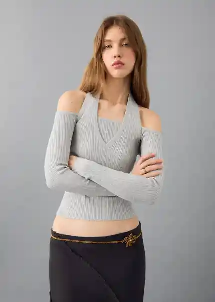Cuello Halter Hombros Descubiertos Manga Larga Tejido de Canalé Tejido de Punto - 27071529_91.