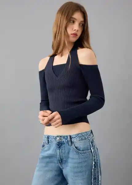 Cuello Halter Hombros Descubiertos Manga Larga Tejido de Canalé Tejido de Punto - 27042553_56.