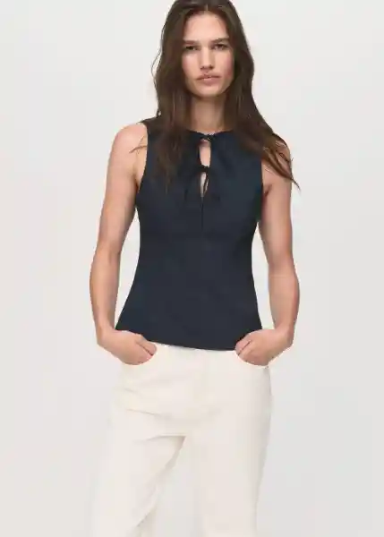 Cuello Redondo Detalle Lazos en la Parte Delantera Diseño Entallado Efecto Denim Sin Cierre Sin Mangas Tirantes Anchos - 17074111_52.