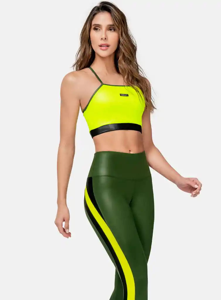 COMPOSICIÓN: 75 % POLIÉSTER 25% ELASTANO FORRO 92% POLIAMIDA 8% ELASTANO TOP DEPORTIVO CON MARQUILLA TEJIDA, ELÁSTICO INTERNO PARA MEJOR AJUSTE Y TELA CON APARIENCIA EN CUERO. VENTAJAS DE LA TELA POLIAMIDA: Secado rápido y fácil transporte de humedad. Resistente, de alta tecnología con mayor elongación. Adaptable a tu cuerpo, recuperando su forma original cada vez que la usas. No se encoge ni arruga. Sensación de suavidad y frescura al tacto. Colores brillantes que se conservan en el tiempo. Amplia circulación de aire que refresca tu piel. Diseño y fabricación 100% colombiana.