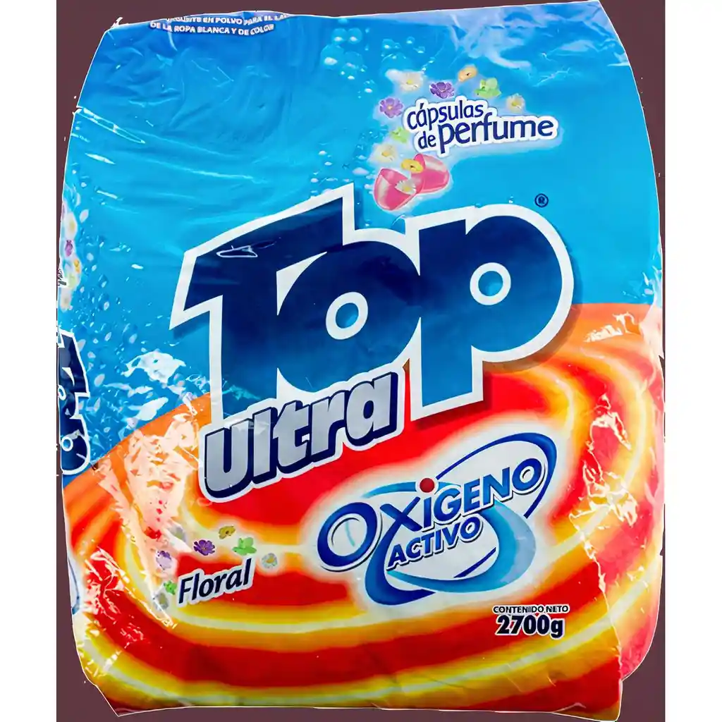 Detergente en polvo Top Ultra Floral oxígeno activo y cápsulas de perfume floral. Elimina las manchas de las telas. Ofrece durabilidad y renovación de la ropa no deteriora los tejidos de telas. Packing: Bolsa