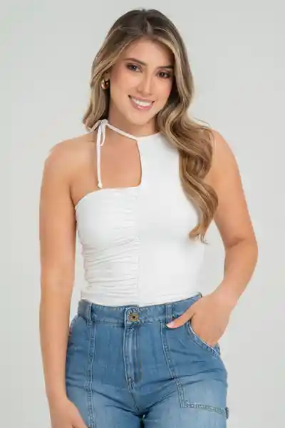 En Tejido de Punto Escote Asimétrico Con Amarre en Cuello Mitad de Cuerpo Drapeado Silueta Ajustada.