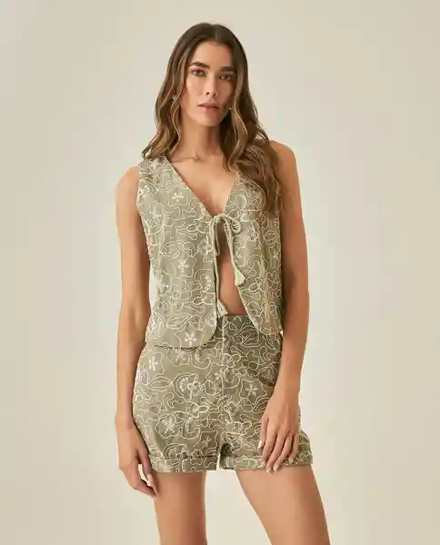 Moda Femenina Silueta Recta Escote en V Manga Sisa en Rayón 46% Poliéster 44% y Lino 10%. Frente Con Cordón Entorchado Para Anudar. Forro Interno. Tela Con Bordado Continuo de Flores. Parte de Set Con Short Chino (Silueta Recta Pretina Con Gancho Bolsillos Laterales Funcionales Bolsillos Ribete Decorativos Posterior Bordado Continuo Flores 46% Rayón 44% Poliéster 10% Lino). Construcción Con Bordado Continuo Coordinado. Silueta Recta. Ean- 711H010Ver170619 Plu- 1111133244489.