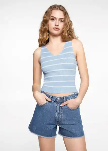 Cuello Pico Estampado de Rayas Sin Mangas Tejido de Punto Fino Tejido de Viscosa - 67096730_50.