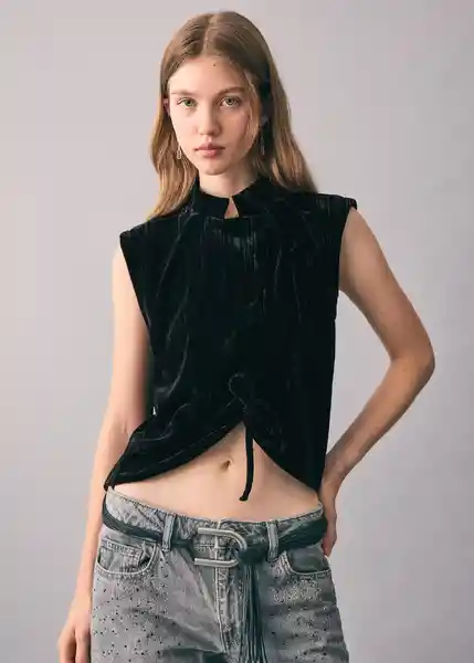 Cierre Delantero Con Botones Cuello Redondo Detalle de Lazo Diseño Chaleco Diseño Recto Sin Mangas Tejido de Terciopelo - 17027786_99.