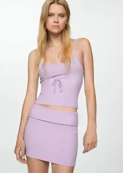 Cuello Redondo, Diseño Entallado, la Modelo Mide 178 cm y Lleva Una S, Lazo Decorativo, Sin Mangas, Tejido de Punto Fino, Tirantes Finos, Total Look - 77082533_68.