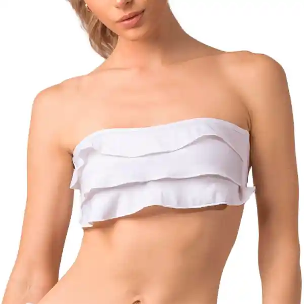 El strapless Ruffle Bandeau Bikini Isla con superposición de volantes.