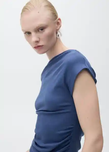 Cintura Drapeada Cuello Asimétrico Diseño Entallado Manga Corta Sin Cierre Tejido Mezcla de Algodón - 87057714_52.