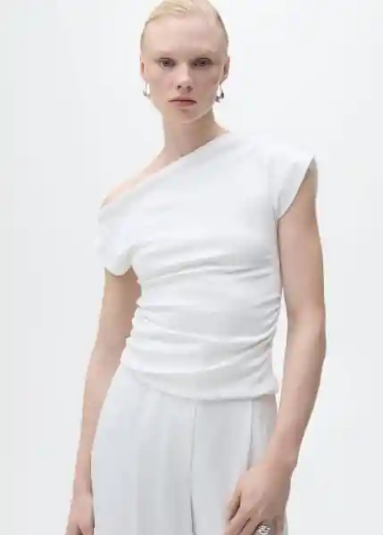 Cintura Drapeada Cuello Asimétrico Diseño Entallado Diseño Entallado Manga Corta Sin Cierre Tejido Mezcla de Algodón - 17011291_01.