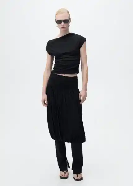 Cintura Drapeada Cuello Asimétrico Diseño Entallado Diseño Entallado Manga Corta Sin Cierre Tejido Mezcla de Algodón - 17011291_99.