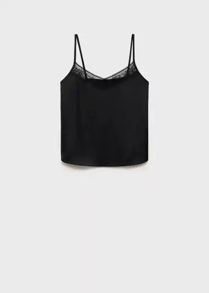 Aplique de Blonda Detalle Fruncido en el Escote Escote de Pico Sin Mangas Tejido Fluido Tirante Fino - 87050458_99.