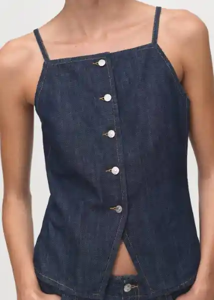 Cierre Delantero Con Botones Costuras en Contraste Cuello Escotado Diseño Recto Sin Mangas Tejido de Algodón Estilo Tejano Vaquero Tirantes Finos Total Look - 17074141_Ts.