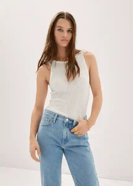 Cuello Redondo Diseño Entallado Sin Mangas Tejido de Punto de Canalé - 47048639_01.