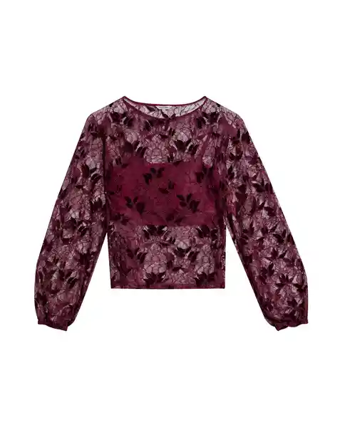 Talla S Para Mujer Silueta Recta Cómoda Escote Redondo Clásico Manga Larga Con Puños Elásticos Que se Ajustan Sin Molestar. Top Interno Incluido Para Mayor Comodidad y Practicidad. Elaborada en Tela Suave Bordada Con Transparencias Que Crean Efecto Elegante y Sofisticado Único Para Destacar Con Elegancia Sutil. Ean- 719G014Mor192118 Plu- 1111133167467.