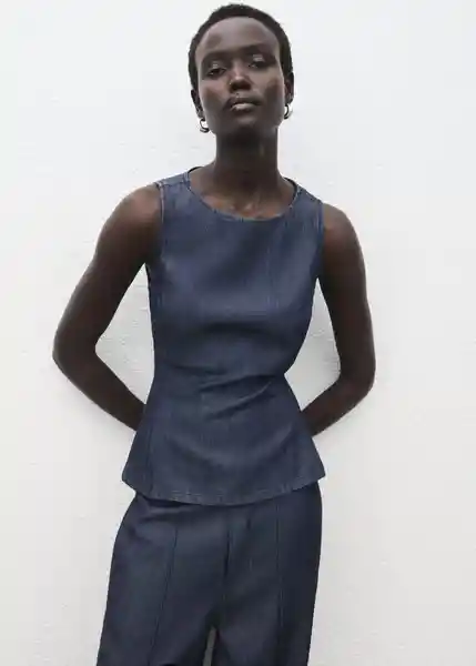 Cierre de Botón en el Cuello Cuello Redondo Diseño Crop Efecto Denim Sin Mangas Tejido Mezcla Algodón y Lyocell Tirantes Anchos Total Look - 17094101_Ts.