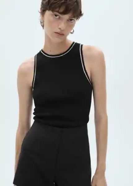 Cuello Redondo, Detalle en Contraste, Diseño Entallado, Diseño Recto, la Modelo Mide 177 cm y Lleva Una Talla S, Sin Mangas, Tejido de Punto Fino, Tirantes Anchos - 77085651_99.