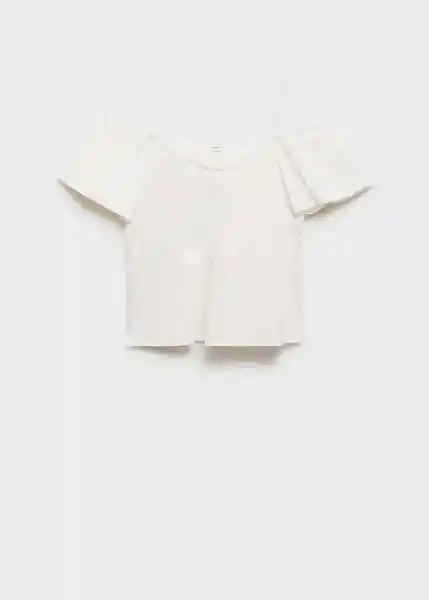 100% Algodón Cuello Pico Cut-Out Detalle de Volante en la Cintura Diseño Corto Diseño Recto Manga Corta Volante Panel Fruncido - 87016339_02.