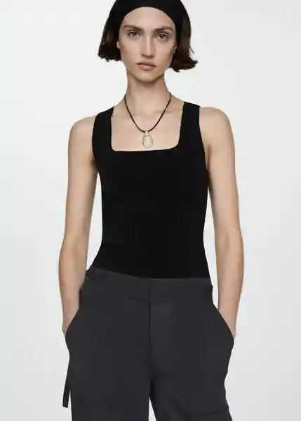 Diseño Entallado, Escote Cuadrado, Sin Mangas, Tejido Elástico, Tirantes Anchos - 77080370_99.