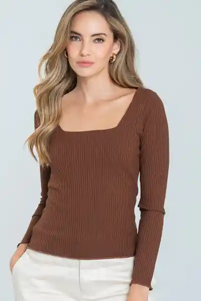 En Rib Fondo Entero Escote Cuadrado Manga Larga Silueta Ajustada.