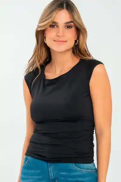 En Tejido de Punto Penélope Cuello Redondo Manga Casco Costados Drapeados Recogido Suave y Parejo en Delantero Espalda Lisa Silueta Ajustada.
