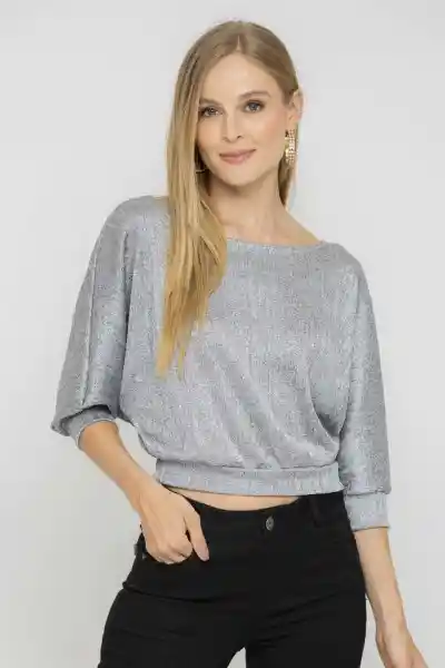 Tejido de Punto Rib Satinado Escote Redondo Manga 3/4 Cruce Decorativo en Espalda y Fajón en Ruedo.