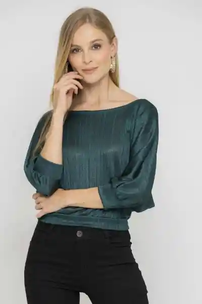 Tejido de Punto Rib Satinado Escote Redondo Manga 3/4 Cruce Decorativo en Espalda y Fajón en Ruedo.