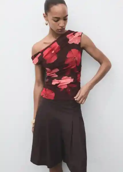 Cuello Asimétrico Diseño Entallado Estampado Floral Fruncidos Laterales Sin Cierre Sin Mangas Tejido Elástico - 17064147_30.