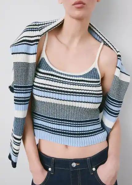 Cuello Redondo Diseño Entallado Estampado Rayas Sin Cierre Sin Mangas Tejido de Punto Tejido Mezcla de Algodón Tirante Fino - 27014100_52.