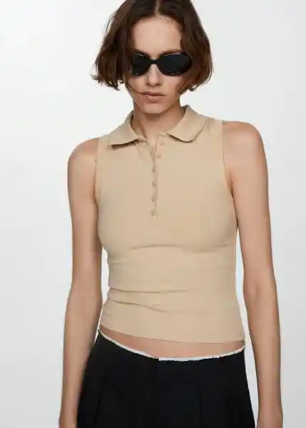 Cierre Delantero Con Botones Cuello Polo Diseño Entallado Sin Mangas Tejido de Punto de Canalé Tirantes Anchos - 67087121_07.
