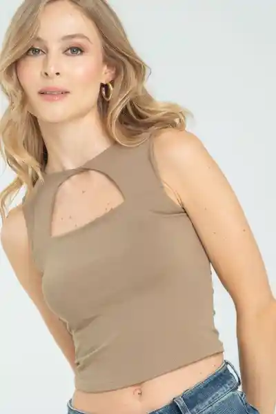 En Tejido de Punto Penélope Escote Redondo Entorchado y Abertura Manga Sisa Silueta Ajustada.