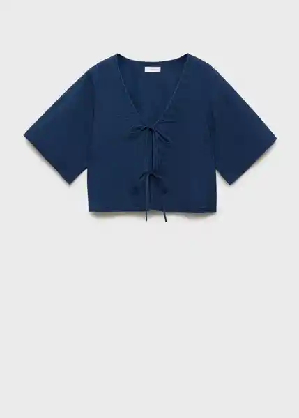 Cierre de Lazos en la Parte Delantera Cuello de Pico Diseño Crop Diseño Recto Manga Corta Soft Denim Tejido 100% Algodón Total Look - 87008653_57.