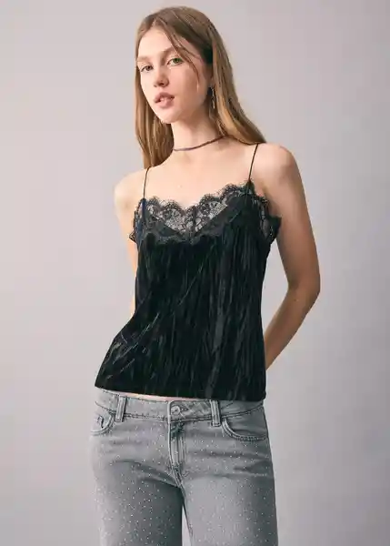 Detalle Encaje Diseño Recto Tejido de Terciopelo Tirantes Finos - 17087783_99.