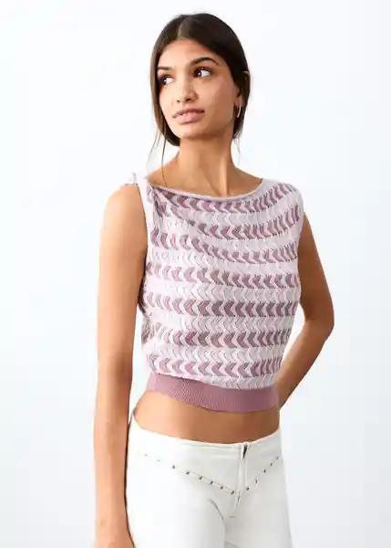 Colores Combinados Cuello Barco Detalle de Nudo en el Tirante Diseño Crop Diseño Recto Tejido 100% Algodón Tejido de Punto Tirantes - 27074771_85.