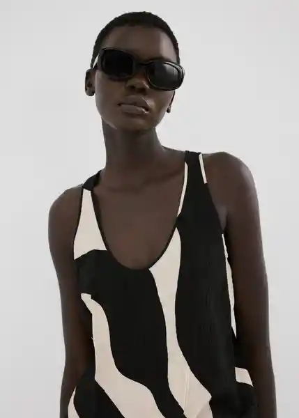 Cuello Redondo Diseño Recto Estampado Cebra Sin Cierre Sin Mangas Tirantes Anchos - 27055833_99.