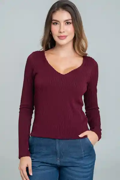En Tejido de Punto Especial Fondo Entero Escote en V Manga Larga Top Interno Espalda Totalmente Lisa Silueta Semi Ajustada.