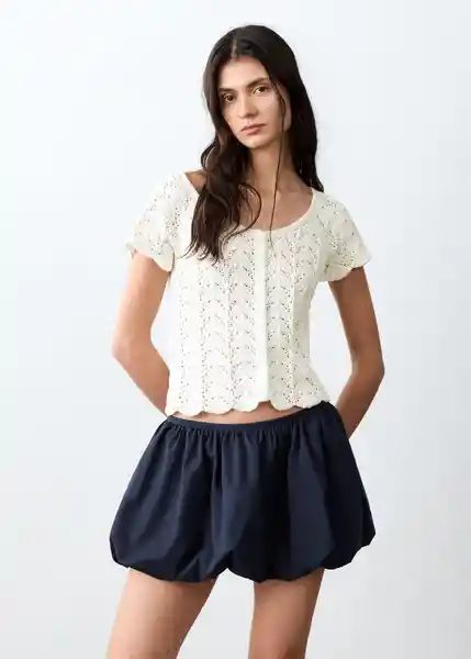 Cierre Delantero Con Botones Cuello Redondo Detalles Festoneados Manga Corta Tejido de Algodón Tejido de Punto Calado - 27065959_02.