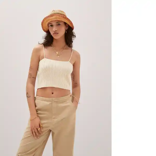 Cuello Recto Diseño Crop Diseño Recto Punto Medio Sin Cierre Tejido de Punto Tejido Elástico Tejido Mezcla de Algodón Tirantes Finos Con Cierre de Lazo - 47037118_05.