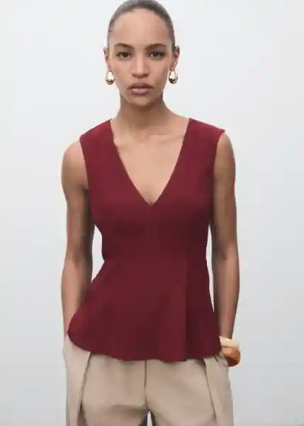 Cierre de Cremallera Lateral Corte Peplum Cuello de Pico Forro Interior Sin Mangas Tejido Mezcla Lyocell Tirantes Anchos - 17054100_78.