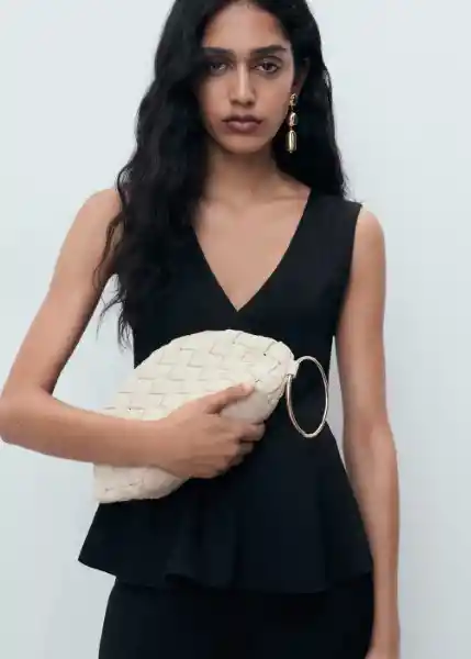 Cierre de Cremallera Lateral Corte Peplum Cuello de Pico Forro Interior Sin Mangas Tejido Mezcla Lyocell Tirantes Anchos - 17054100_99.