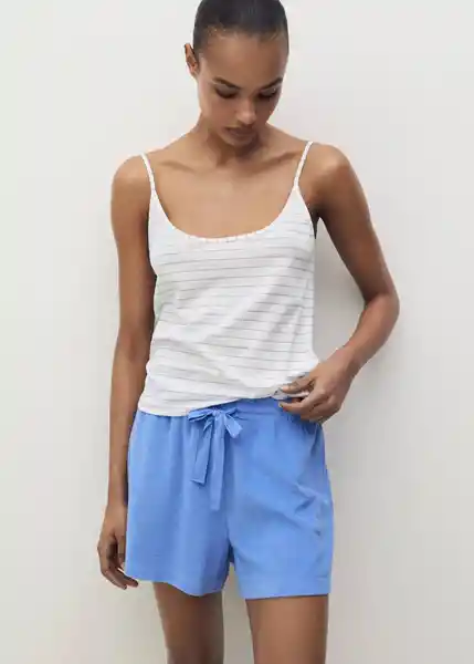 100% Algodón Cuello Redondo Diseño Bicolor Estampado de Rayas Tejido Fluido Tirantes Finos - 87088650_01.