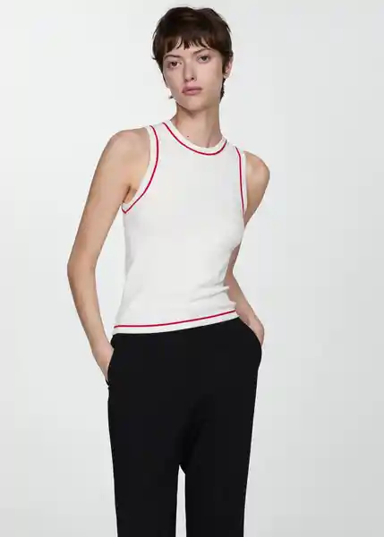 Cuello Redondo, Diseño Entallado, Diseño Recto, la Modelo Mide 177 cm y Lleva Una Talla S, Sin Mangas, Tejido de Punto Fino, Terminaciones en Contraste - 77052919_05.