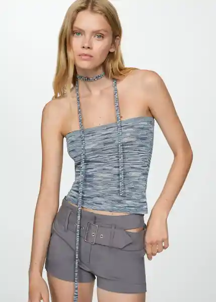 Cuello en Forma de Choker, Diseño Combinado, Diseño Entallado, la Modelo Mide 178 cm y Lleva Una S, Palabra de Honor, Sin Mangas, Tejido de Punto Fino, Total Look - 77041505_52.