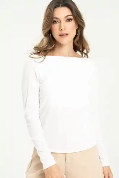En Tejido de Punto Rib Manga Larga Escote Tipo Barco Silueta Semi Ajustada.