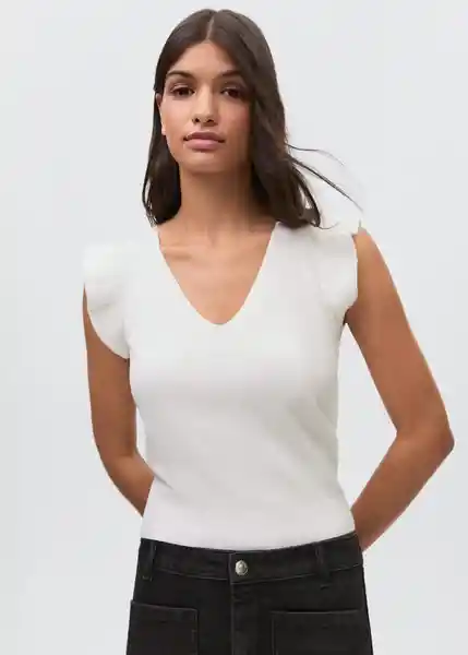 Cuello Pico Diseño Recto Sin Mangas Volantes en Los Hombros - 87074785_02.