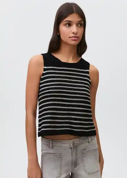 Cierre de Botón en la Parte Posterior Cuello Redondo Diseño de Rayas Silueta Recto Sin Mangas Tejido de Algodón - 87035732_02.