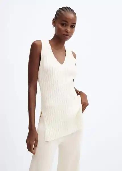 Cuello Pico Diseño Entallado Punto de Canalé Sin Mangas Tejido de Punto Fino - 57017721_05.