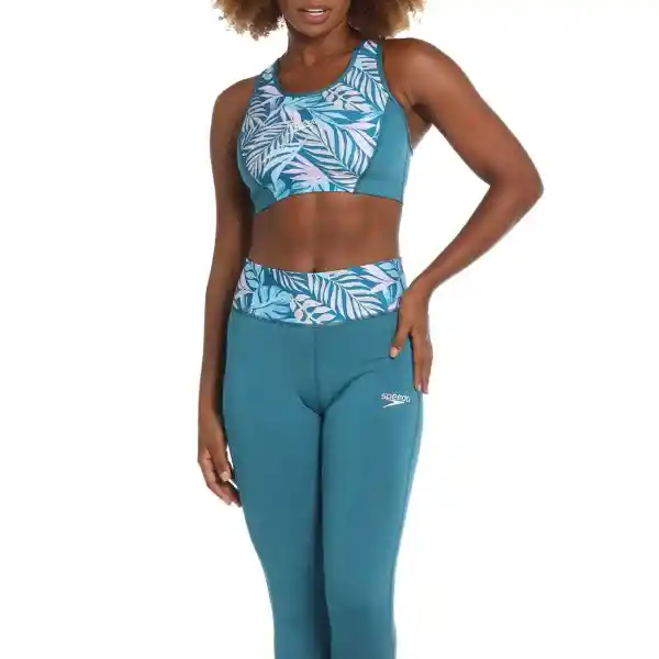Conoce Nuestro Top Surfy Palms un Top Deportivo Azul Que te Permite Desarrollar Tus Entrenamientos Más Exigentes Con Total Comodidad Diseñado Con Altos Estándares de Calidad Para Ofrecerte Comodidad y Estilo Mientras Realizas Tus Prácticas Deportivas. Cuenta Con Forro Interno Delantero y Soporte Medio y un Diseño Floral en Tonos Azules y Pasteles Con Logo Speedo en la Parte Frontal Para Que te Sientas Cómoda y Hermosa en Todo Momento. Puedes Usarlo Acompañado de Nuestro Pantalón Leggigns Surfy Palms Mujer Como Conjunto Deportivo Ideal Para Usar en el Gimnasio Haciendo Yoga o Caminando en Medio Del Bosque o la Ciudad.